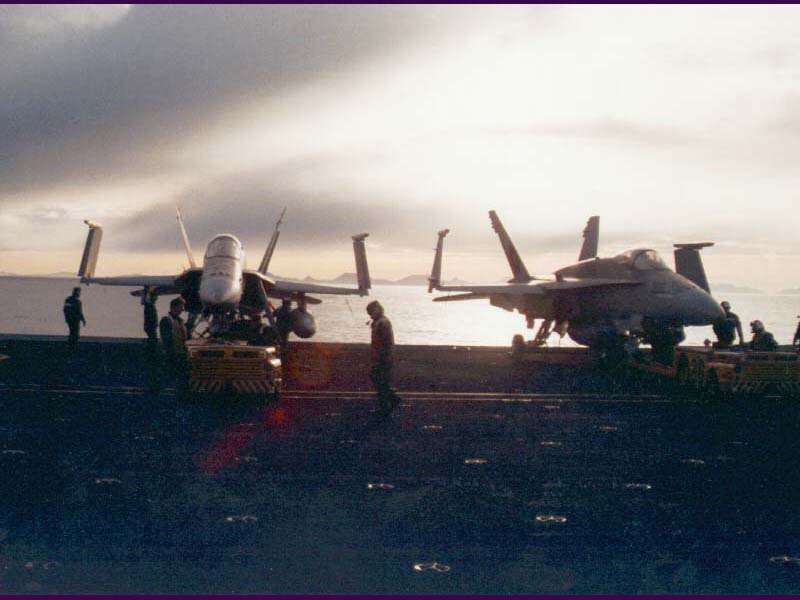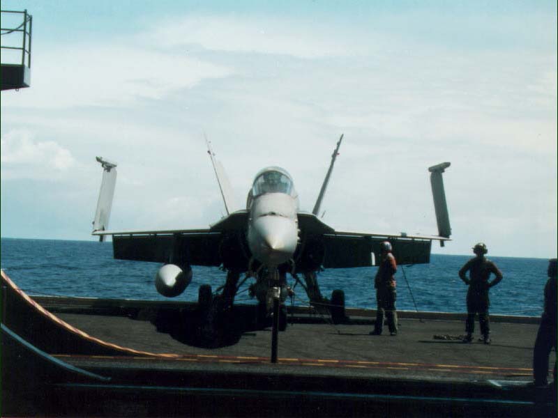 F/A-18C Hornets aboard the USS Constellation (CV-64). (Steve Beals photo) |