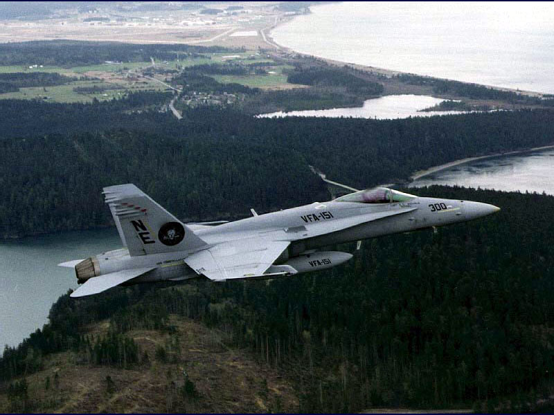 F/A-18C Hornet from VFA-151 Vigilantes over Whidbey Island. (US Navy photo) |