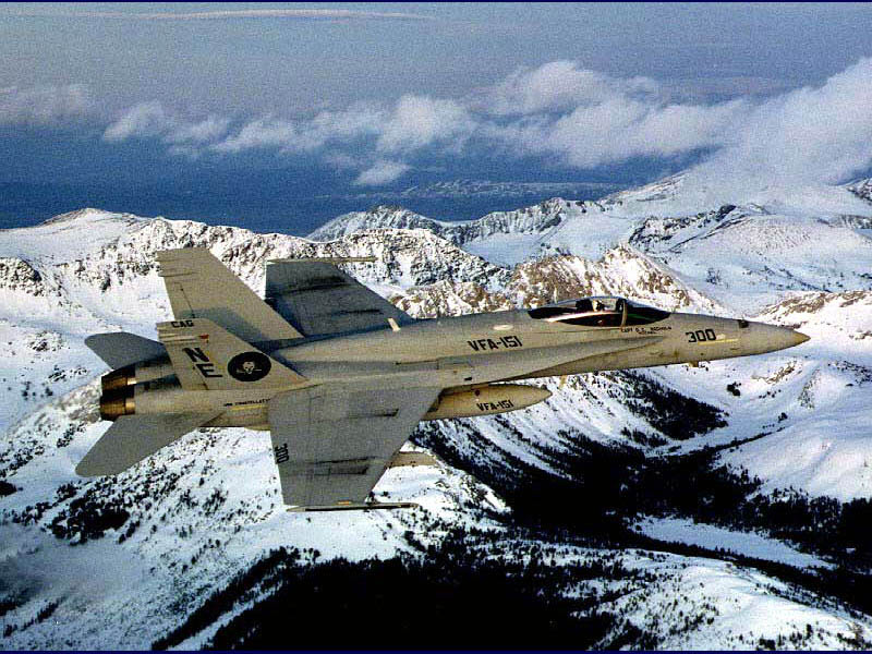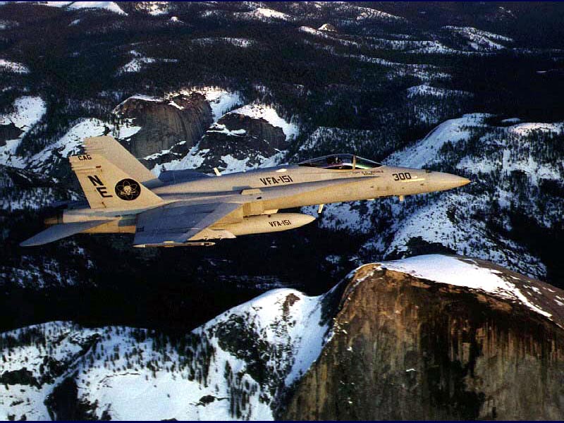 F/A-18C Hornet from VFA-151 over Yosemite National Park. (US Navy photo) |